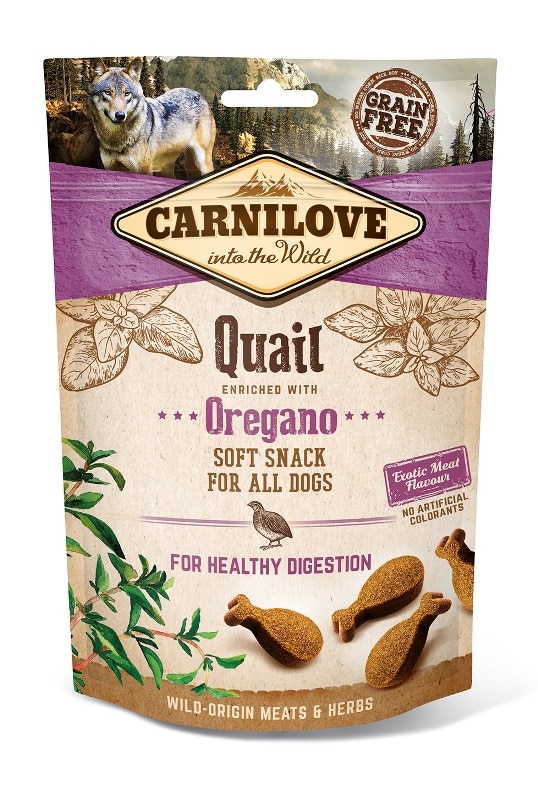 Samenstelling: 35% gedroogde kwartel, gele erwten, vloeibaar plantaardig zetmeel, kwartelsaus, saus van pluimveelever, collageen, 1% oregano, zalmolie.