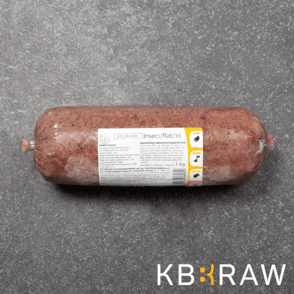 Samenstelling 65% Konijn; 40% rug, 10% hart, 5% oren, 5% long, 2,5% nier, 2,5% vet, 33% Insect (BSF), 1% Zalmolie